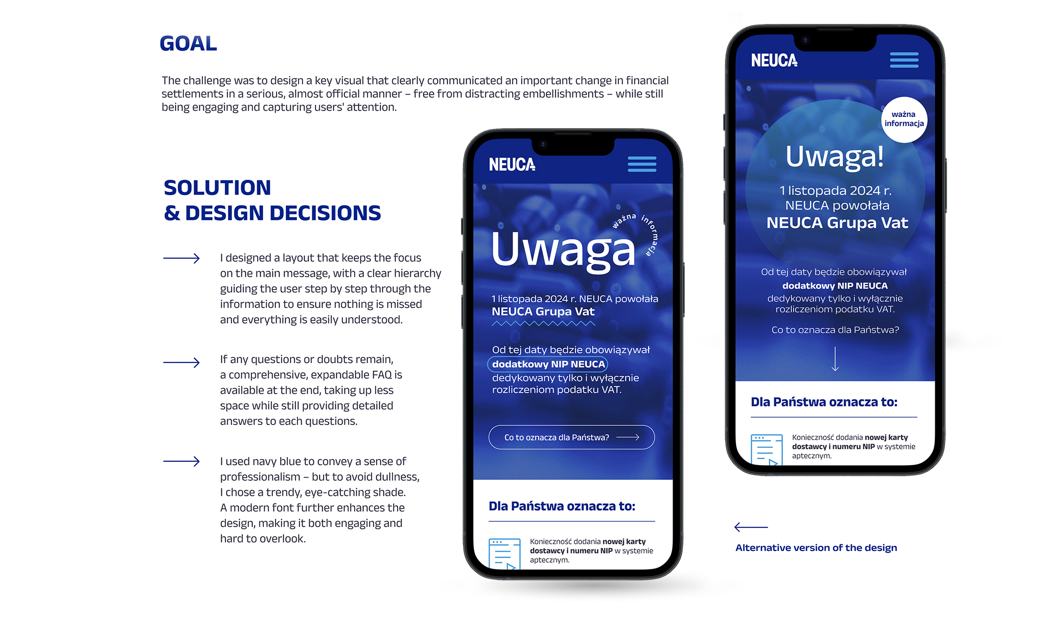 How to make an invoice update look engaging? This key visual was created to communicate an important financial change in a clean, official tone. I kept the layout simple and focused, but also added a modern twist to balance a formal tone with visual appeal. The communication proved effective – clear for users and well received by the client, who even submitted the project later to a competition.